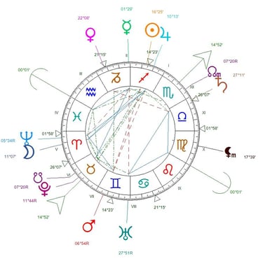 L’évolution transformatrice proposée par le thème semble obéir a une loi d’équilibre, lisible dans le renversement énergétique des planètes rétrogrades et autres outils d’interprétation karmique. Ce symbolisme n’a que faire d’un mental limitant ou jugeant : chaque expérience d’incarnation est unique selon le karma engendré, le dharma est la reconnaissance de cette loi, au-delà de tous nos concepts.